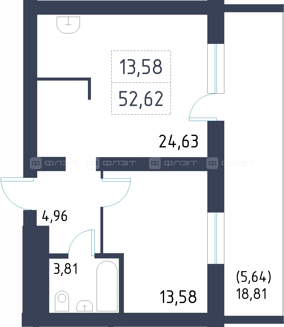 - 52.62/13.58/24.63 м²